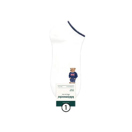 0 spring new men's short waist cotton socks cute cartoon bear short tube Korean socks kiki spring and summer casual