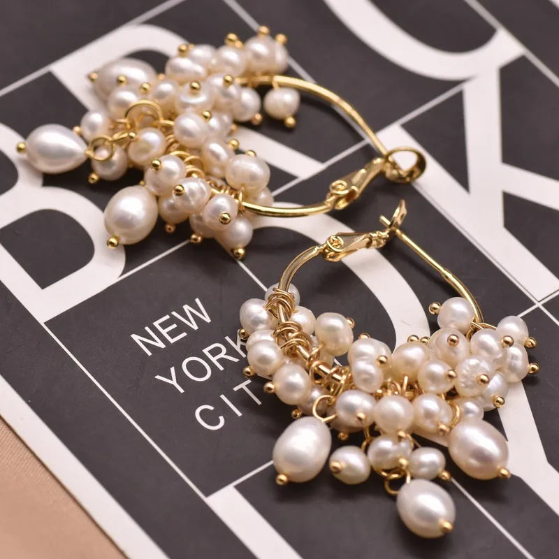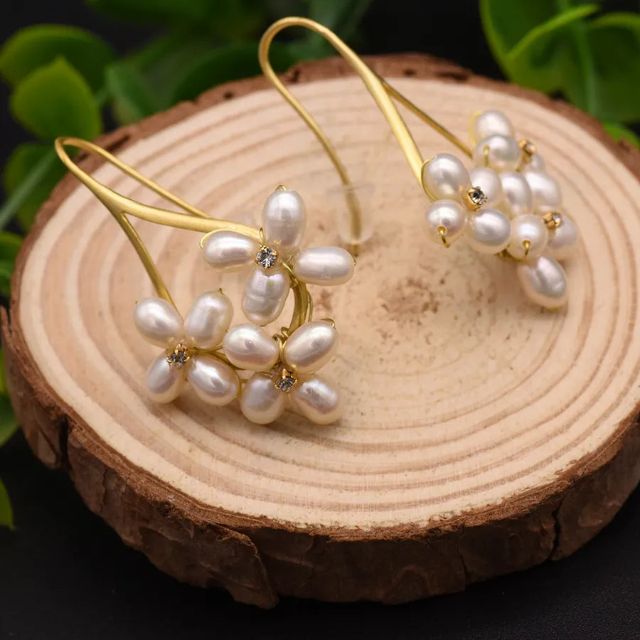 1 Pair 18K Gold Plated Freshwater Pearl Copper Zircon Flower Drop Earrings