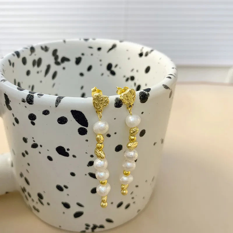 1 Pair 18K Gold Plated White Gold Plated 925 Sterling Silver Freshwater Pearl Pearl Freshwater pearl earrings Geometric Drop Earrings