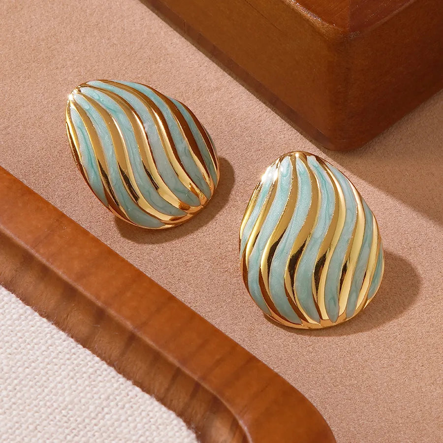 1 Pair Casual Cute Vacation Stripe Oval Enamel 304 Stainless Steel Imitation Gold Ear Studs