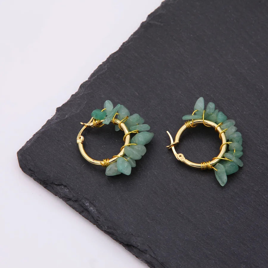 1 pair ethnic style bohemian tropical solid color handmade plating natural stone copper 18k gold plated hoop earrings