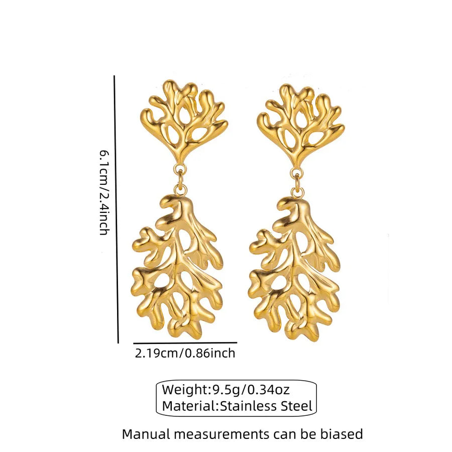 1 Pair Fairy Style Beach Sweet Coral Coral 304 Stainless Steel Imitation Gold Drop Earrings