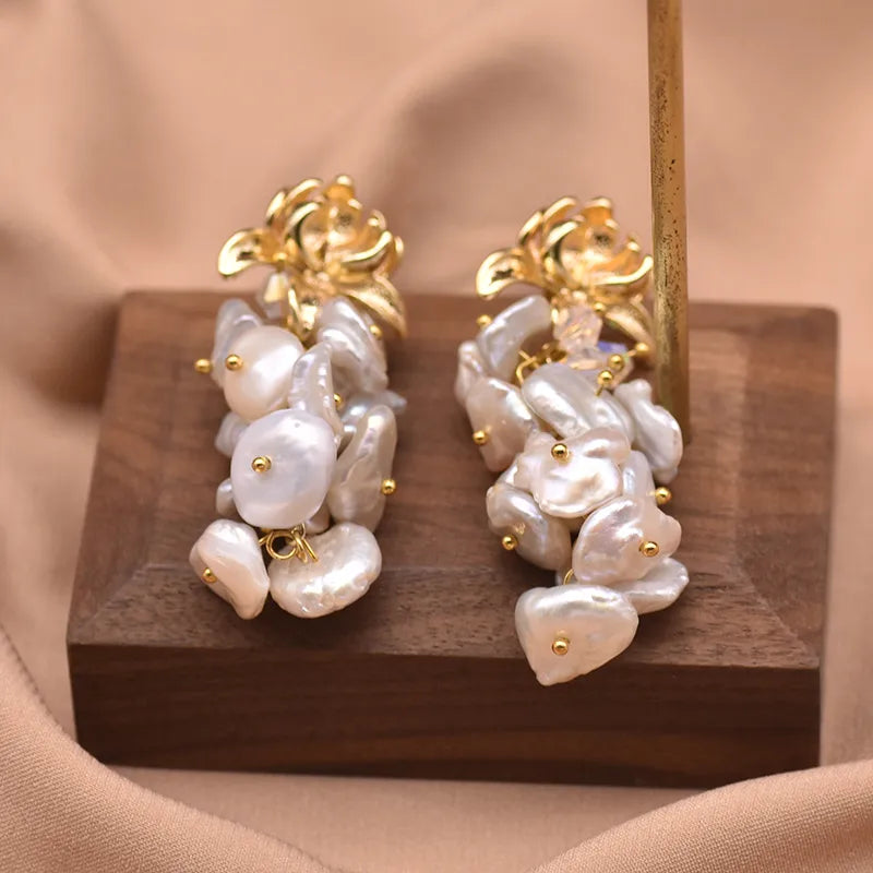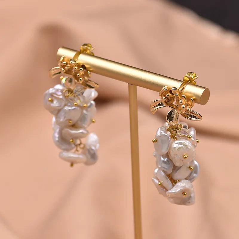 1 Pair Simple Style Classic Style Flower Plating Inlay Copper Freshwater Pearl Drop Earrings