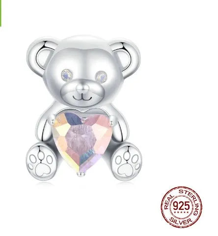 1 Piece 12 * 14mm Hole 4~4.9mm 925 Sterling Silver Zircon White Gold Plated Bear Heart Shape Polished Pendant Beads Jewelry Accessories