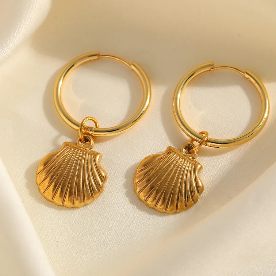 1 Piece Cute Romantic Marine Style Shell Plating 304 Stainless Steel 18K Gold Plated Earrings