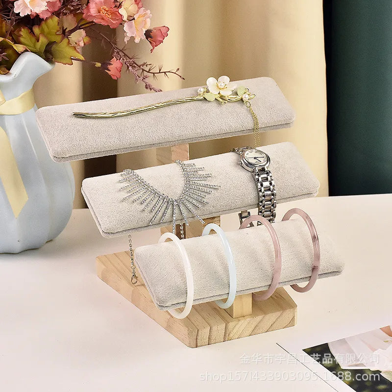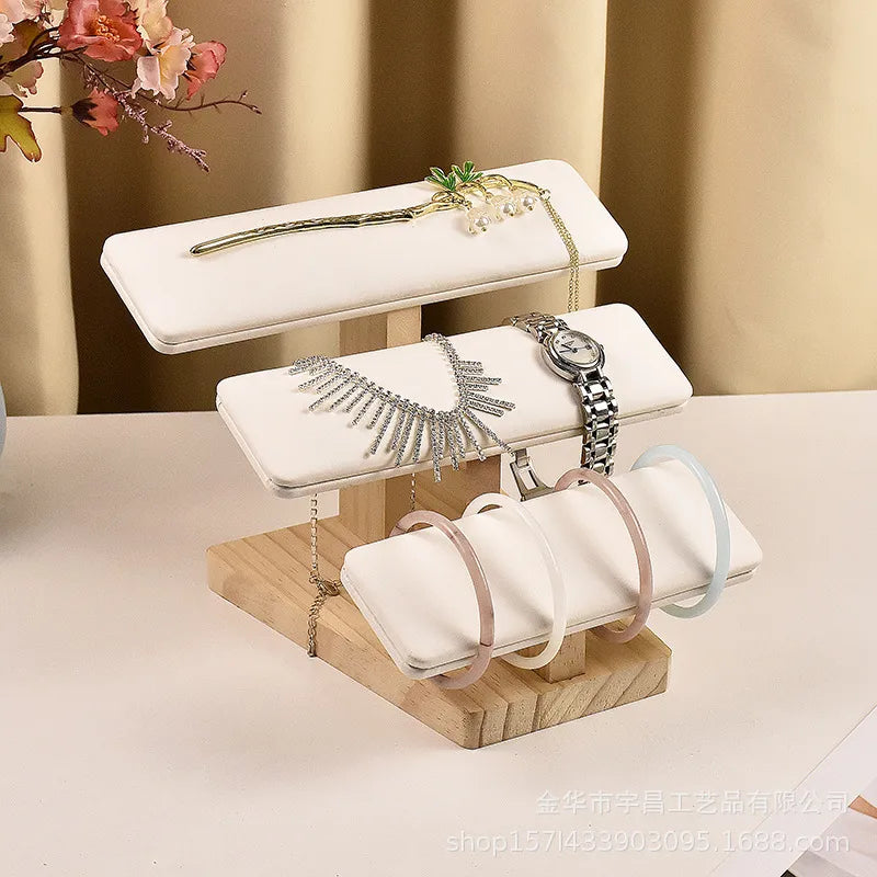 1 Piece Pu Leather solid wood Flannel Modern Style Simple Style Solid Color Jewelry Display Jewelry Rack