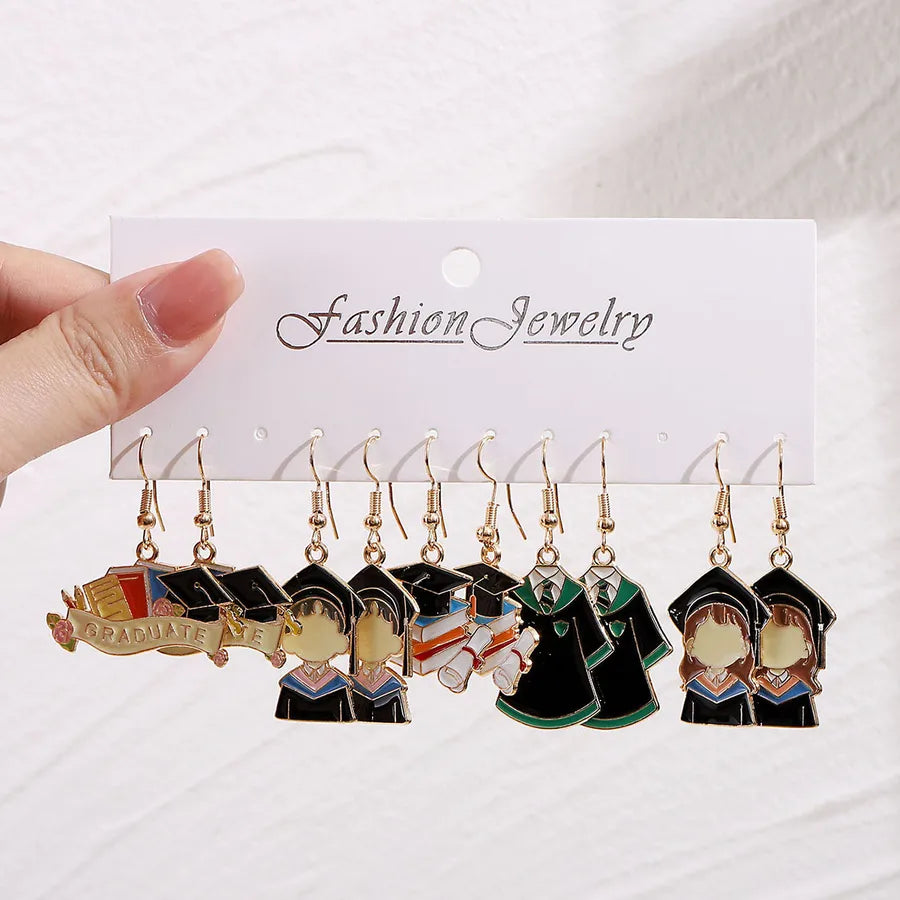 1 Set Cute Retro Preppy Style Trencher cap Student Clothes Alloy Drop Earrings