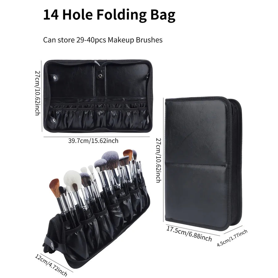 14-40 Hole Cosmetic Brush Bag Large Storage Bag Large Capacity Black Bookleaf Foldable Cosmetic Bag