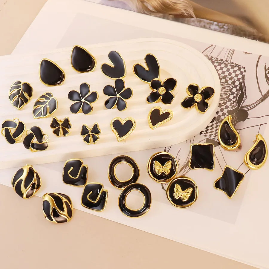 14 Pairs Elegant Lady Simple Style Round Square Flower 304 Stainless Steel 18K Gold Plated Ear Studs