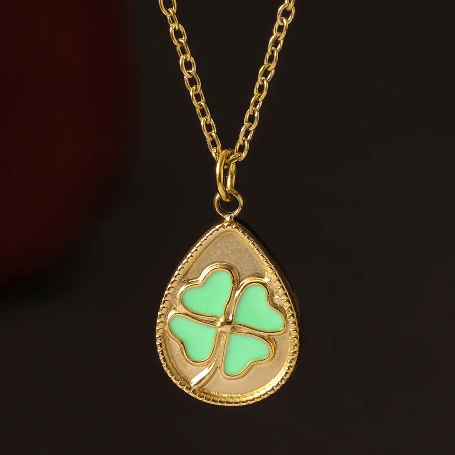 14K Gold Plated Titanium Steel Four Leaf Clover Lucky Pendant Necklace Women's Fashion Stainless Steel Jewelry Waterdrop Shape