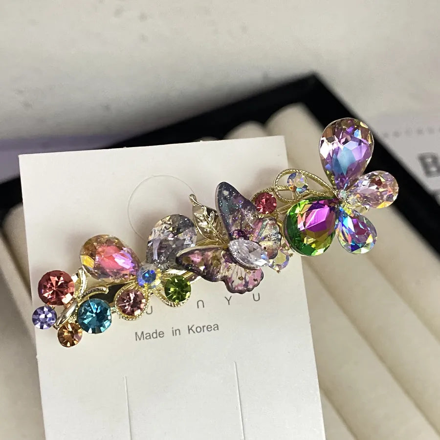 2025 New Crystal Barrettes New Women's Press Clip Crystal Butterfly Barrettes Tied-up Hair Ins Style Simple Fashion