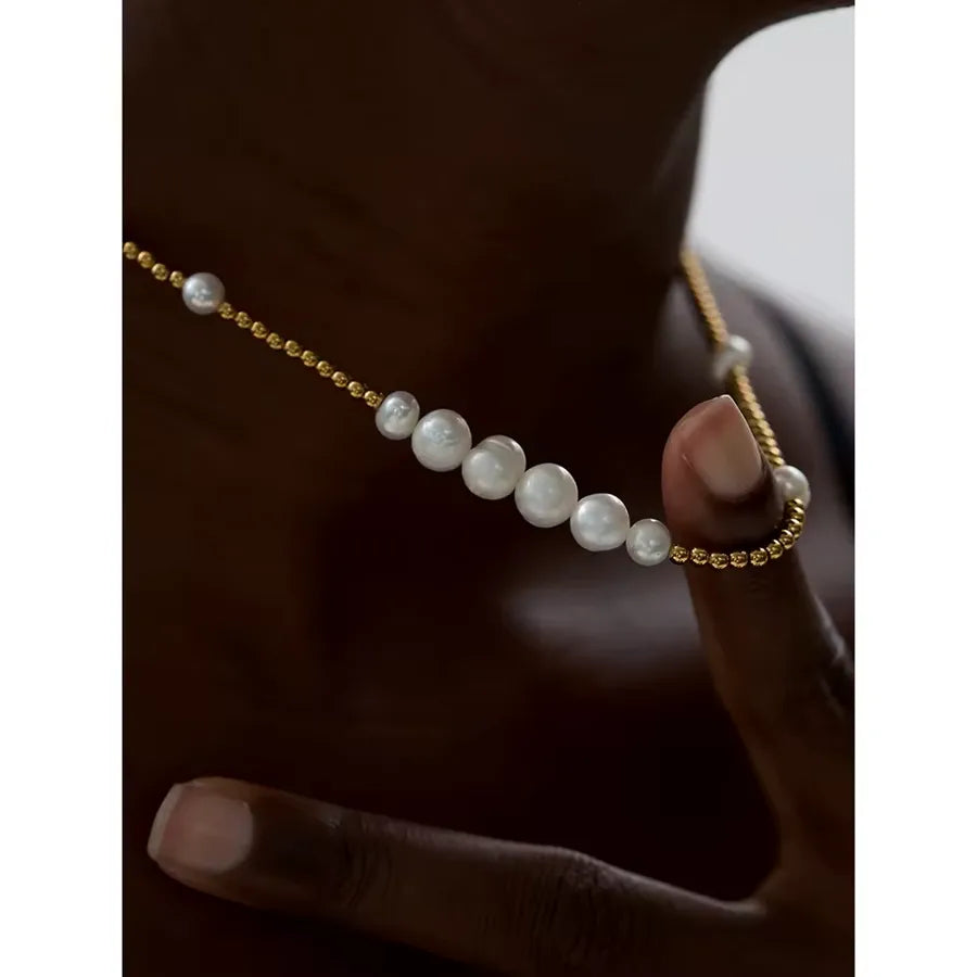 302 Stainless Steel 304 Stainless Steel Freshwater Pearl Beaded Round Necklace