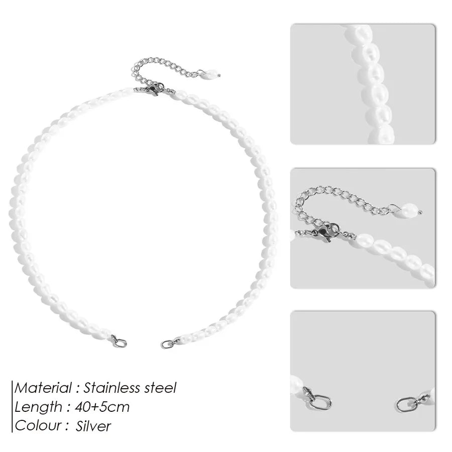 316 Stainless Steel Freshwater Pearl Beaded Chain Geometric Necklace