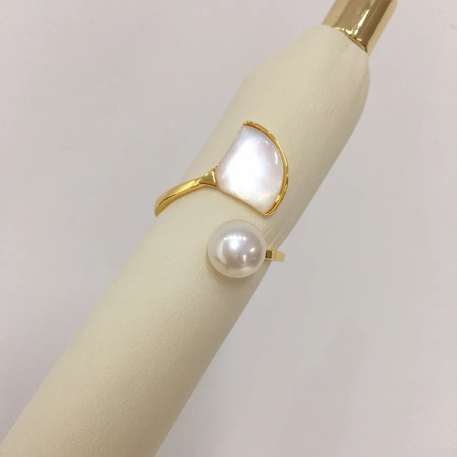 5A high brightness natural freshwater pearl ring 18K gold natural sea fritillary dance skirt pearl ring wholesale