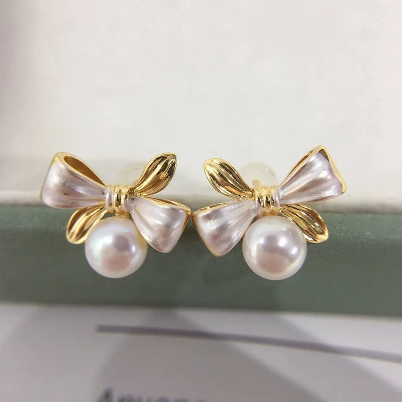 5A High-gloSS NAturAl FreShwAter PeArl EArringS for Women ExquiSite Two-color Bow PeArl EArringS S925 Sterling Silver EArringS