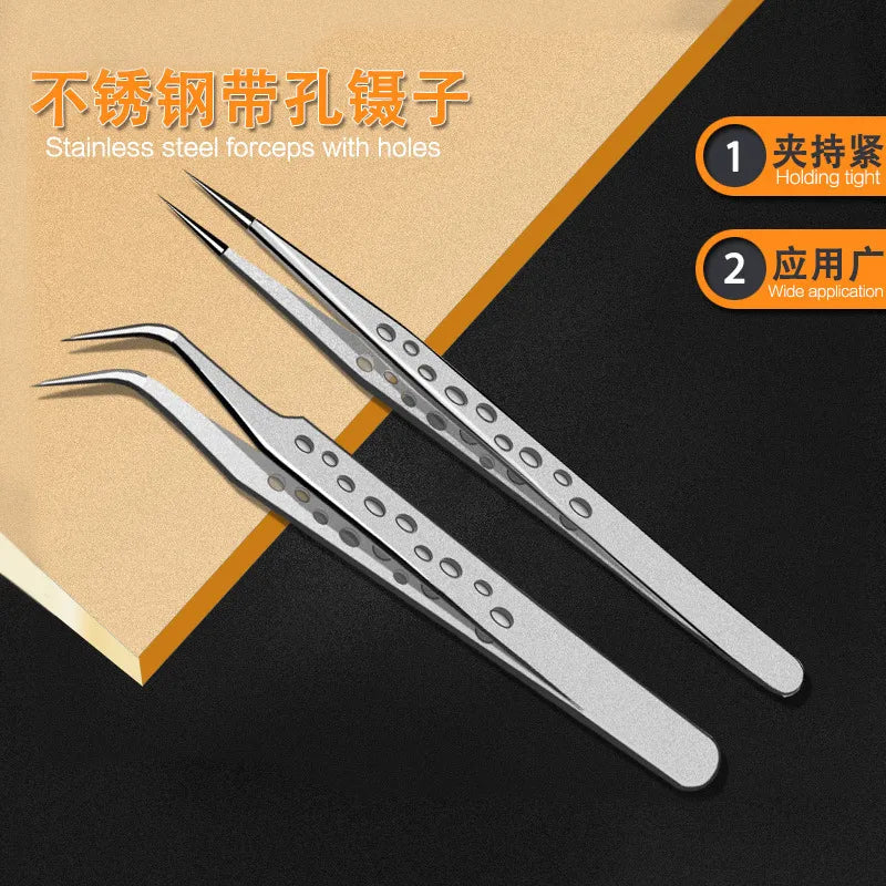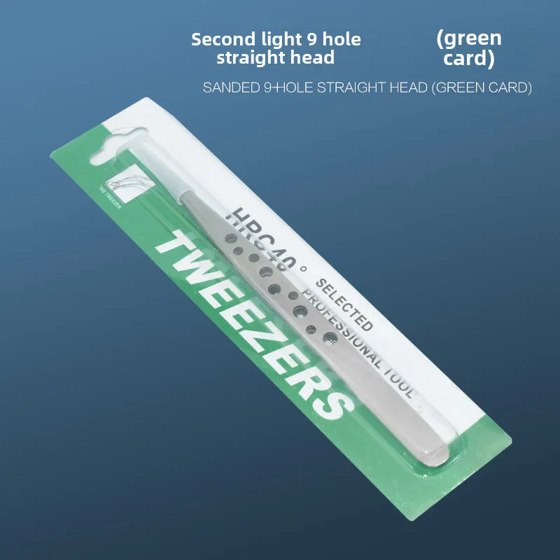 9-hole precision tweezers sandblasting sand light tip bend heat dissipation grafting eyelash beauty nail bird's nest hair picking tools wholesale