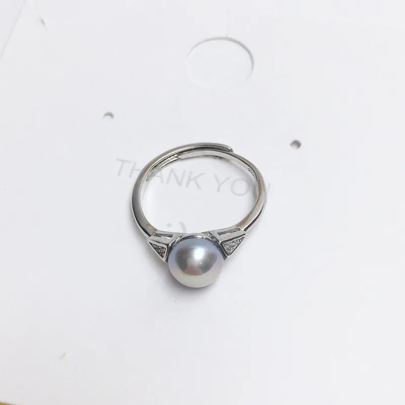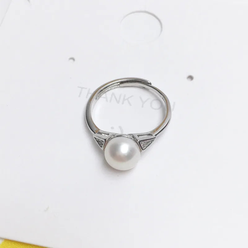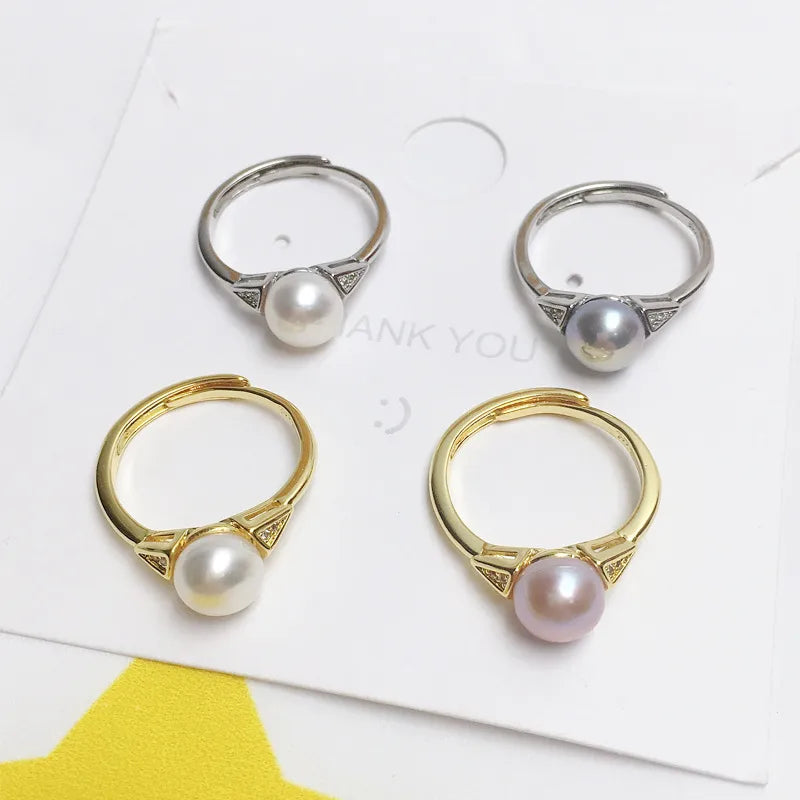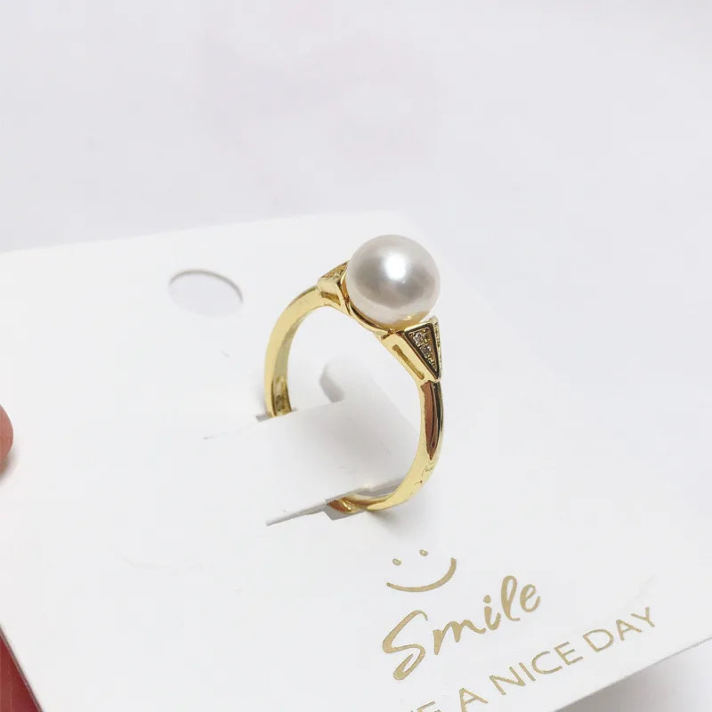 925 half silver fashion simple pearl ring natural freshwater pearl ring copper gold plated live supply wholesale