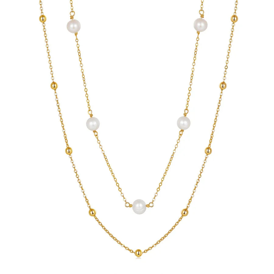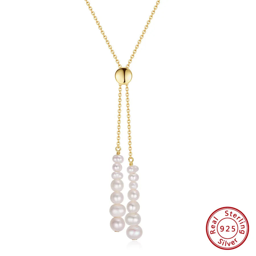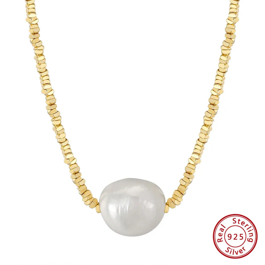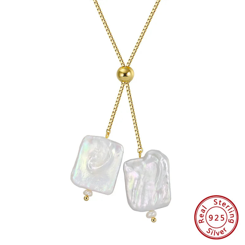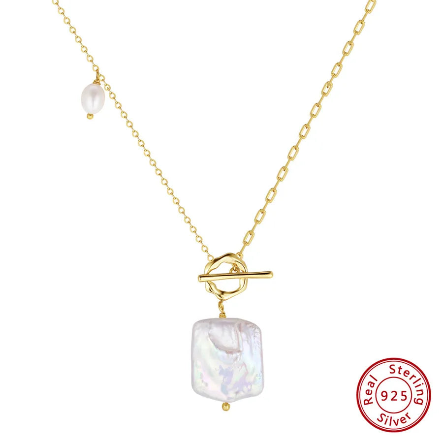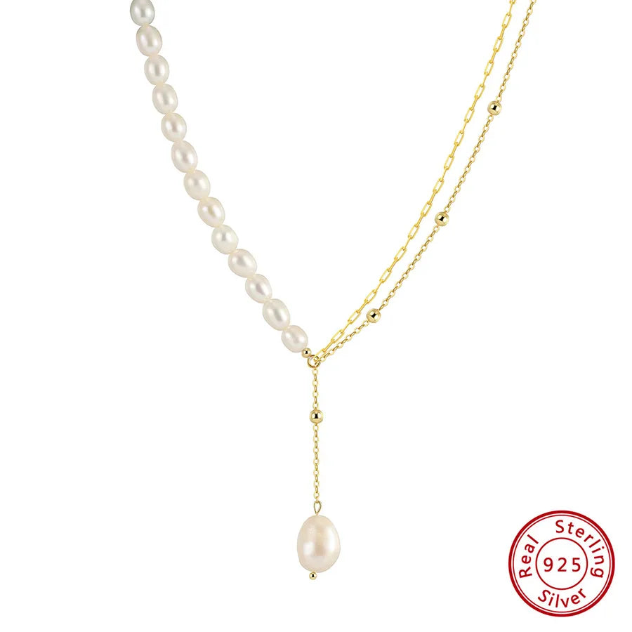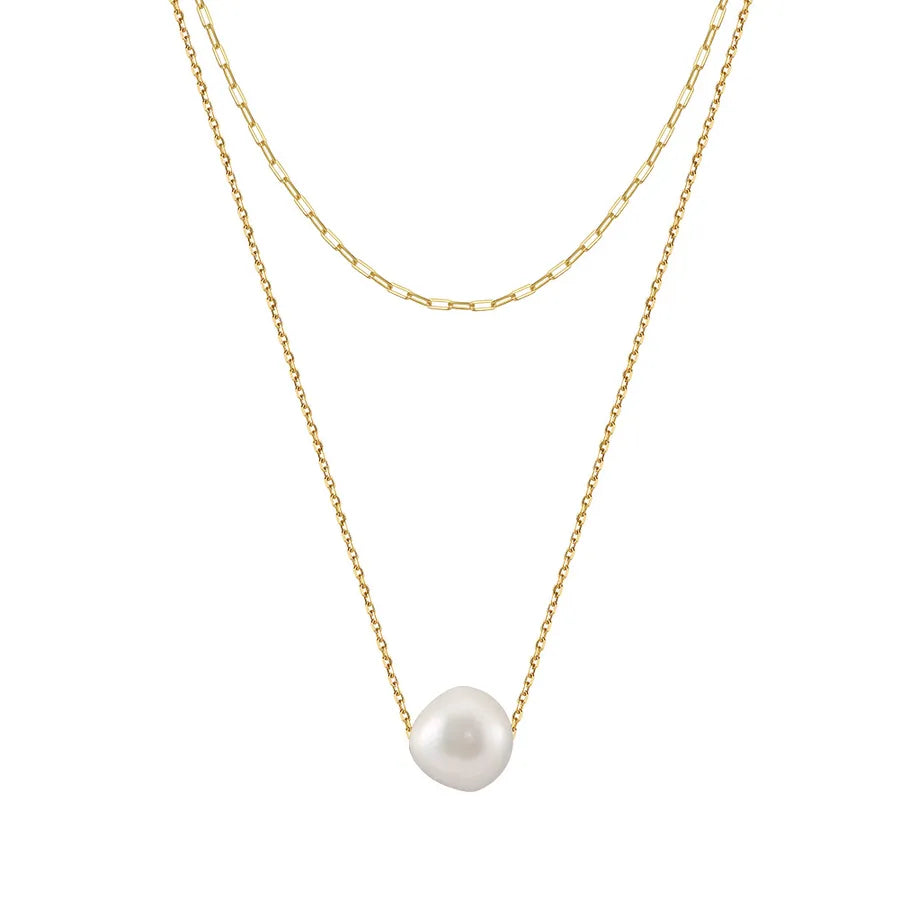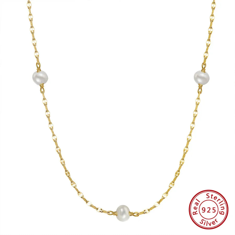 925 Sterling Silver Freshwater Pearl cable chain Plating Geometric Double Layer Necklaces Pendant Necklace Necklace