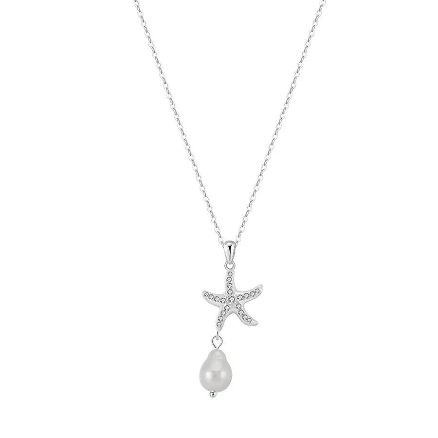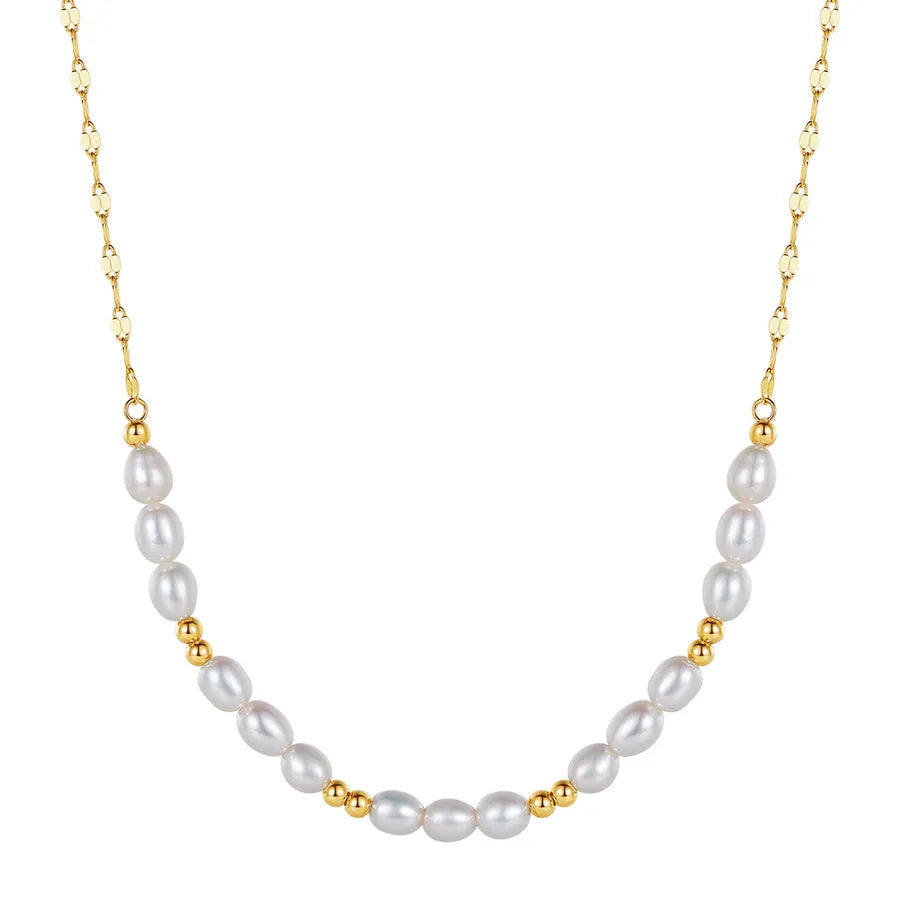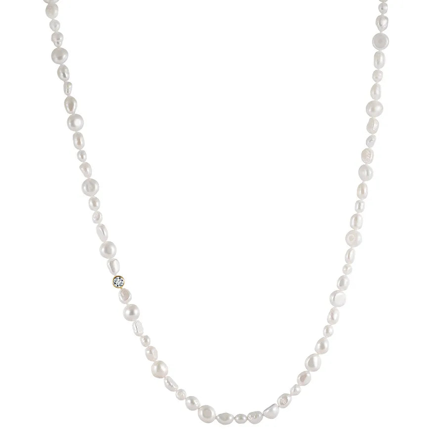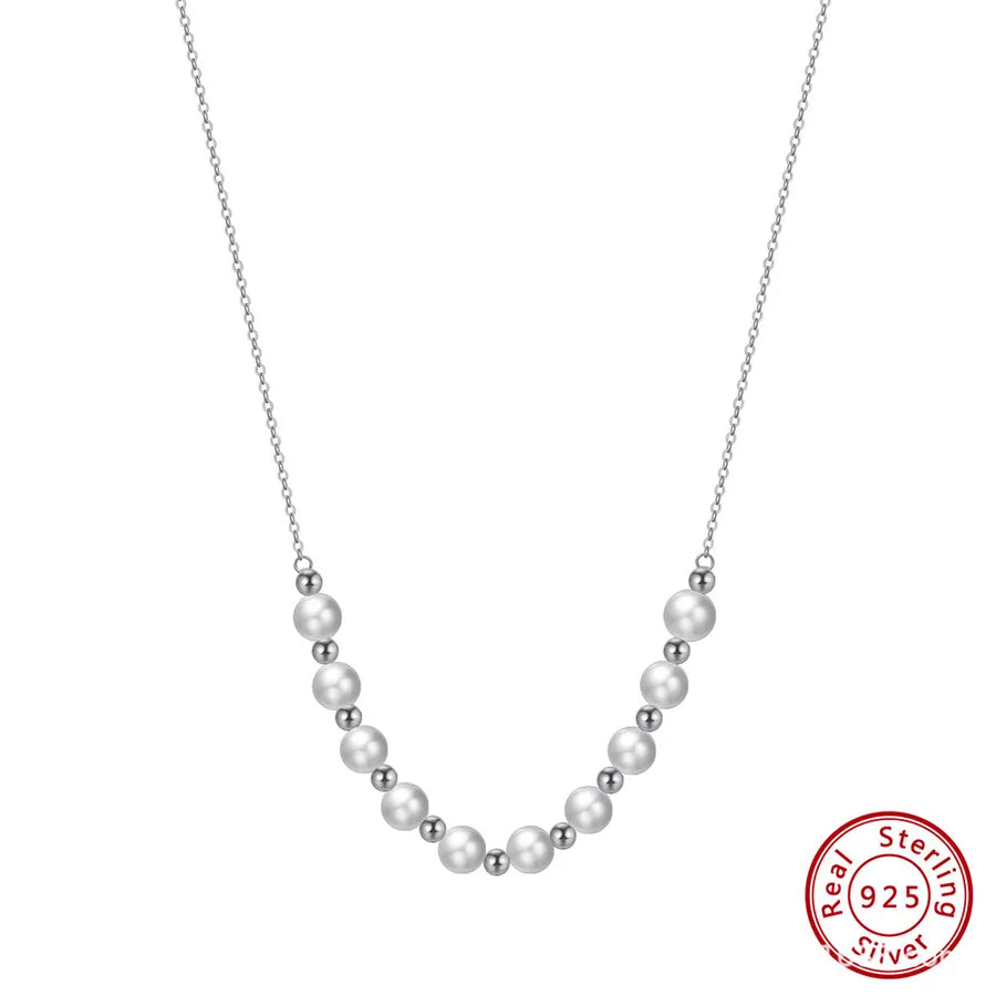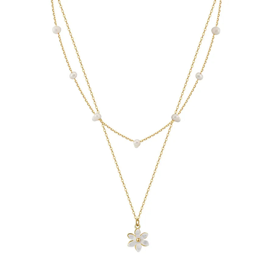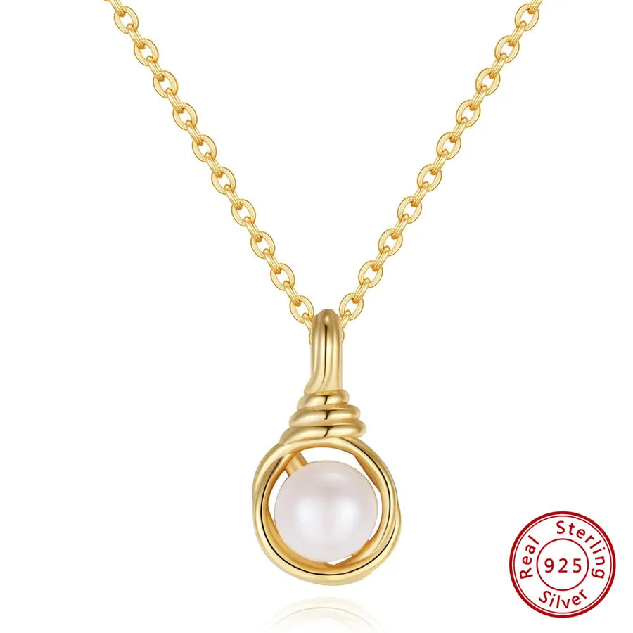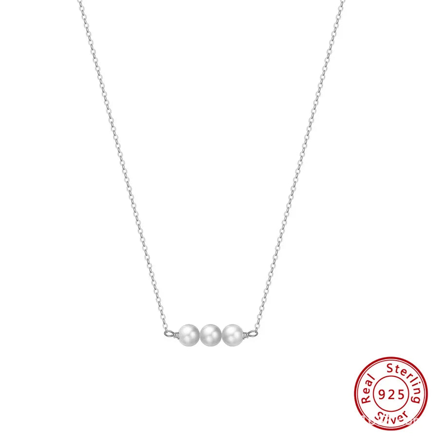 925 Sterling Silver Freshwater Pearl cable chain Plating Geometric Double Layer Necklaces Pendant Necklace Necklace