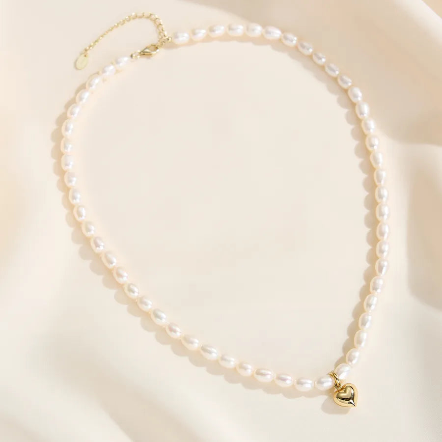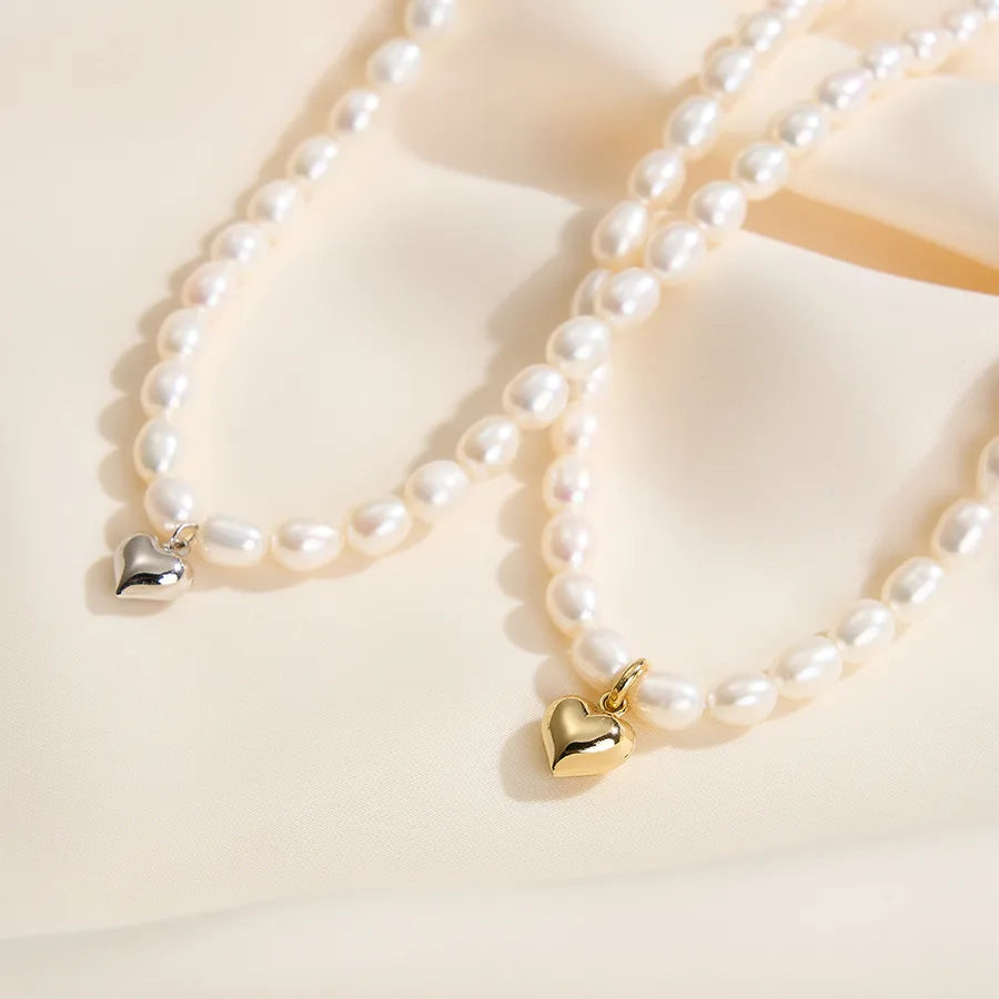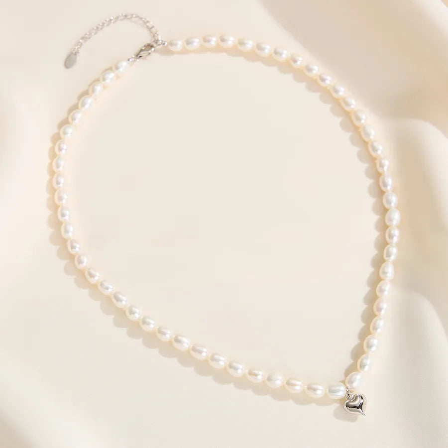925 Sterling Silver Freshwater Pearl Long-Lasting Plated Beaded Chain Heart Shape Necklace