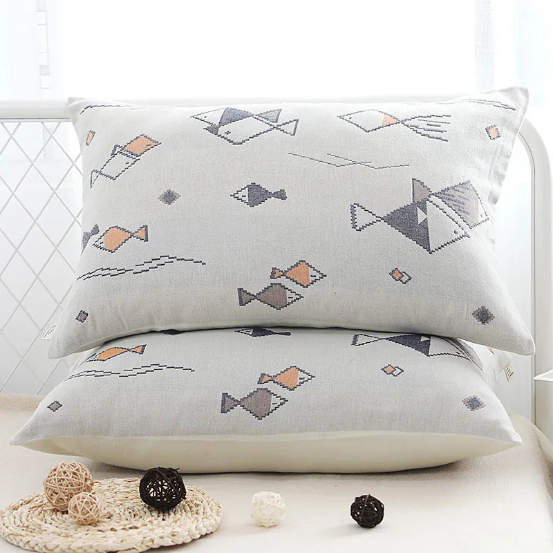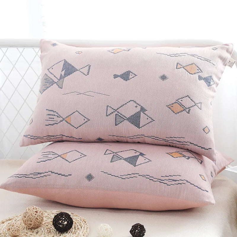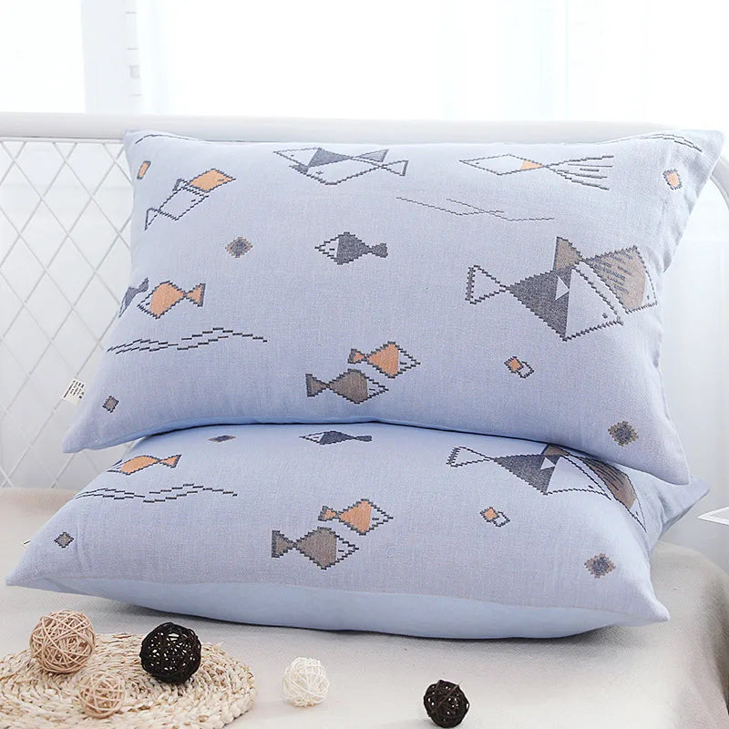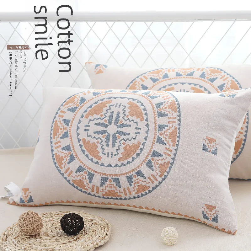 A Pair of Gauze Pillow Case Cotton Pillow Towel Cotton Pillow Case High-end European-style Couple Pillow Case
