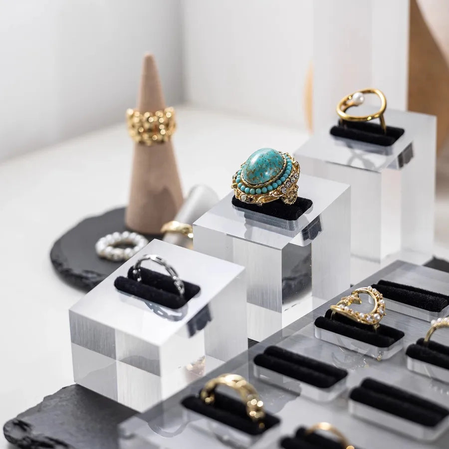 Acrylic Jewelry Ring Display Stand Combination Nordic Style Plate Base For Photography Props Storage Showcase Holder
