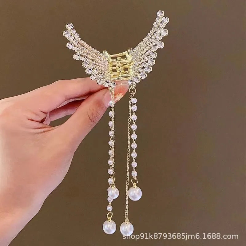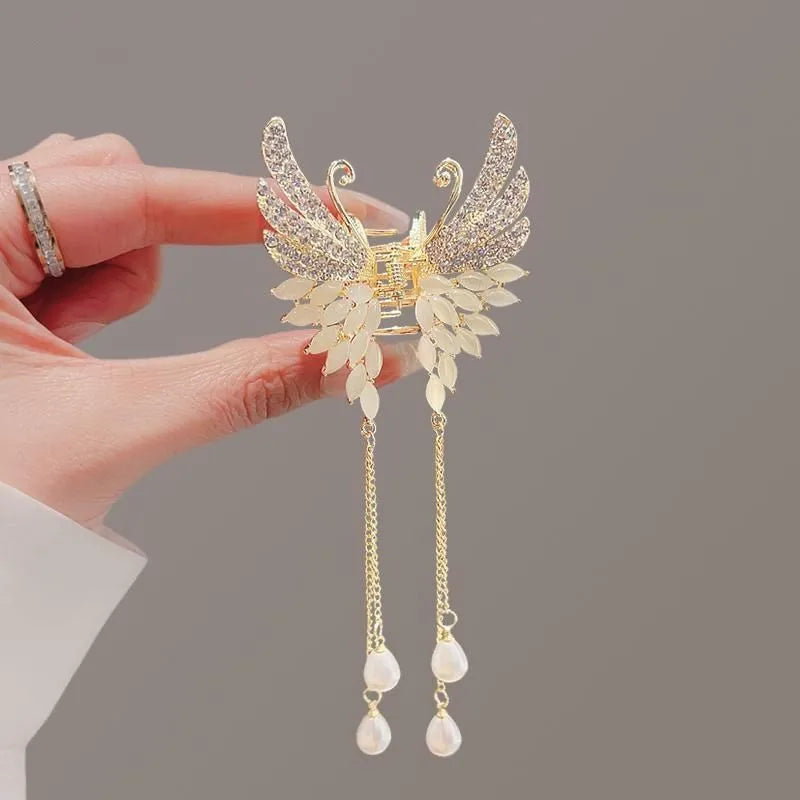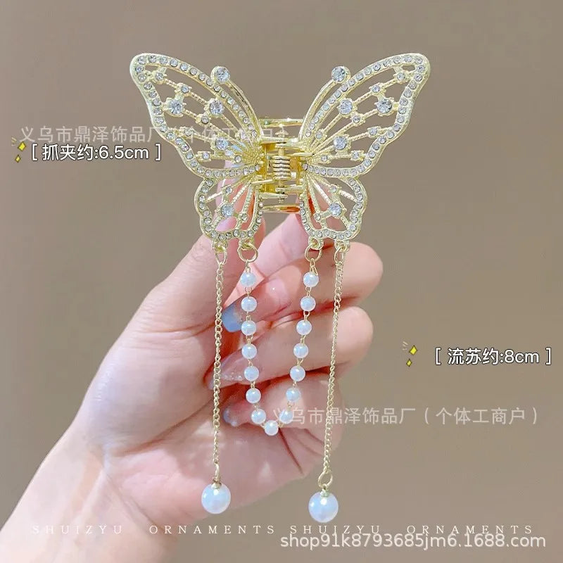 Alloy butterfly hairpin Korean high-end sense exquisite pearl tassel hair accessories half hair clip women's headdress wholesale
