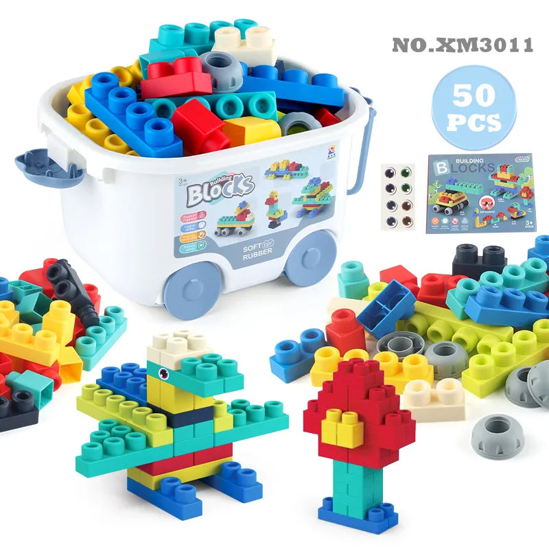 Baby Soft Silicone Building Blocks Large Granular DIY Assembly Non-toxic Chewing Boilable Toddler Toy Educational Puzzle Game
