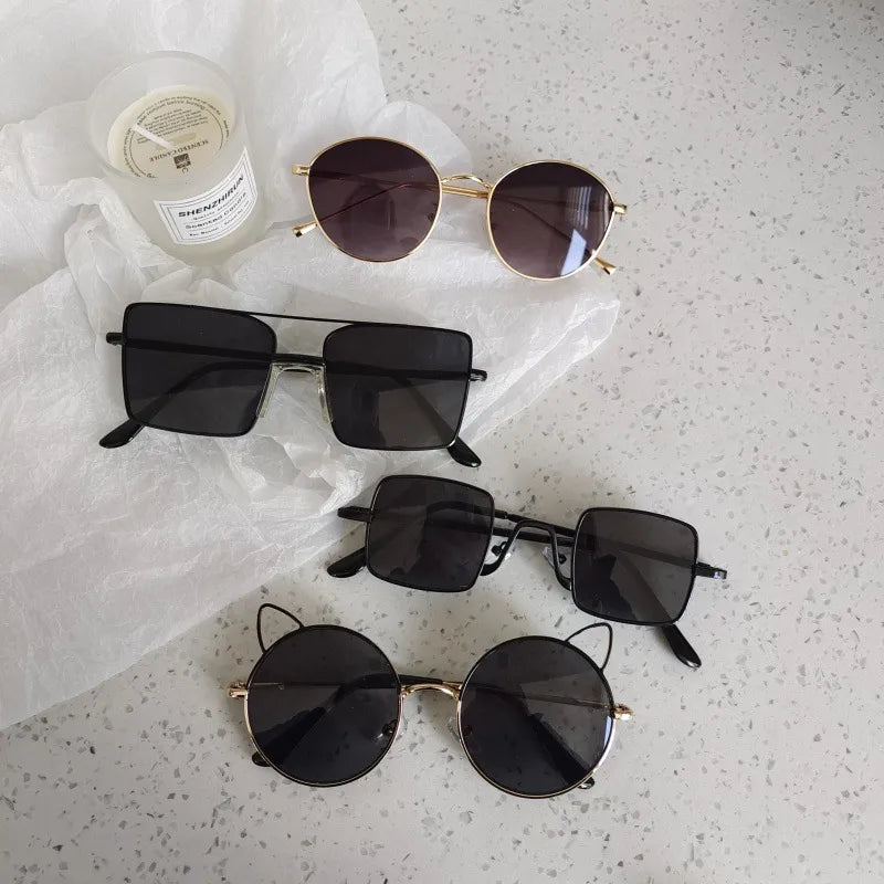 Black Kidsren's Dot Diamond Cute Cat Eye Male and Female Baby Sun Protection Personalized Fashion Sunglasses Colorful Pearl Sunglasses