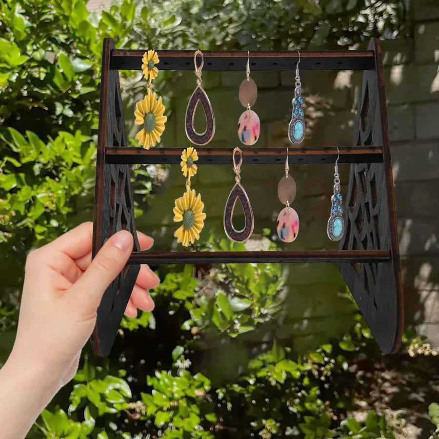 Black Wooden Earring Display Stand Jewelry Storage Organizer Desktop Artistic Style Wood Carving Jewelry Accessory