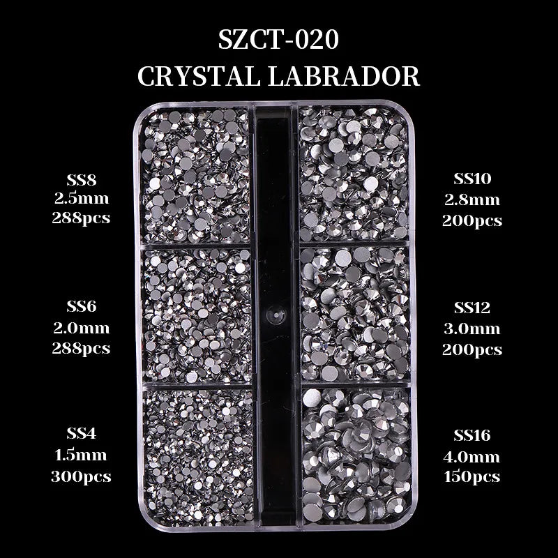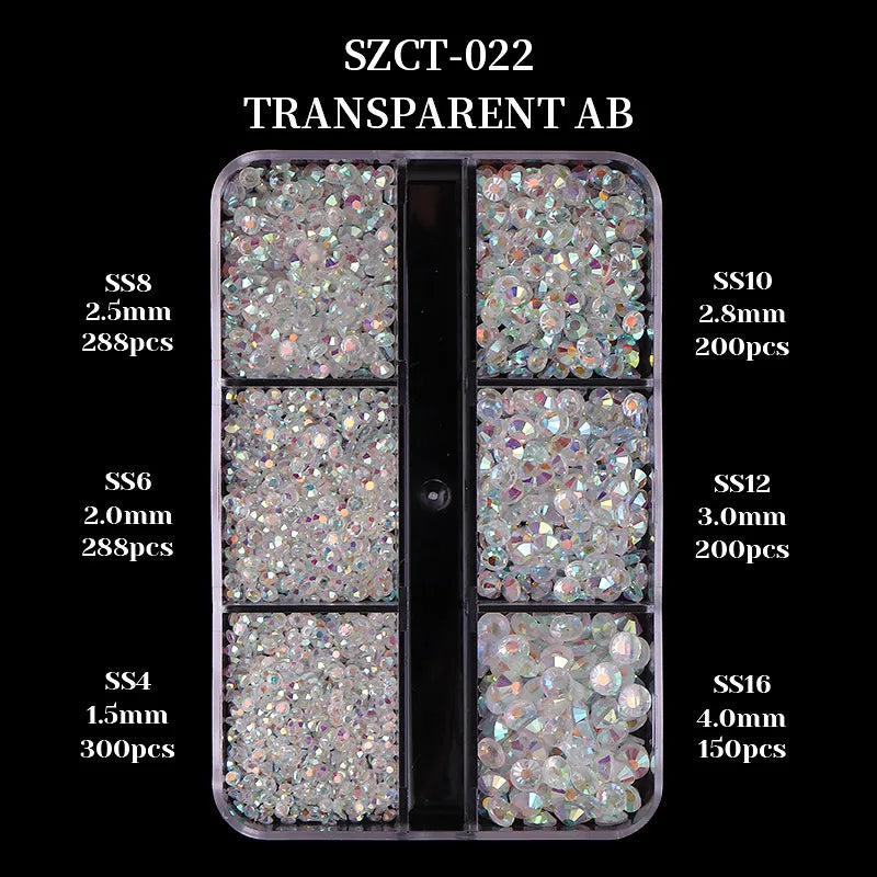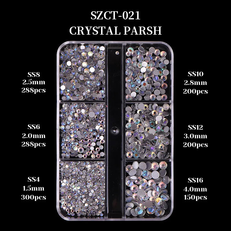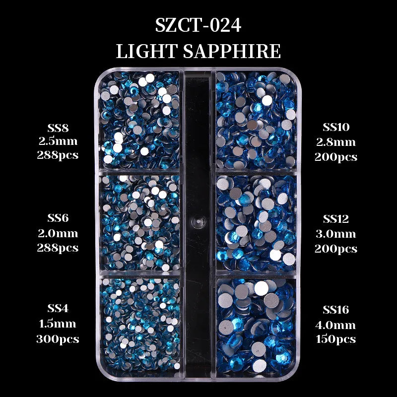 Bottoming Drill Colorful Crystals Crystal Glass Drill Size Mixed Rectangular Jewel Nails Ornament 6 Grid Box