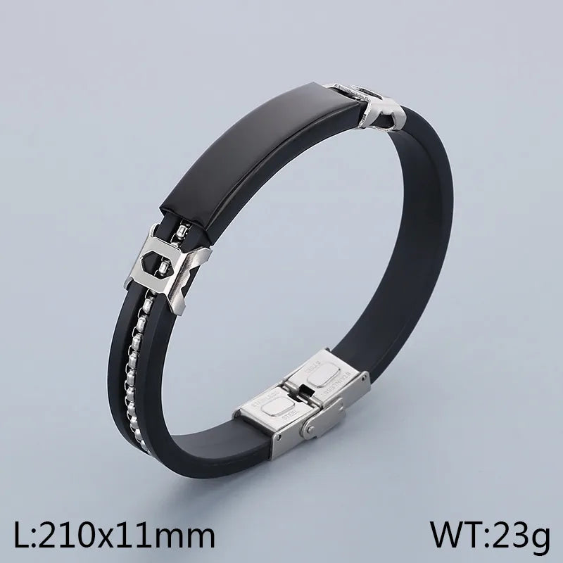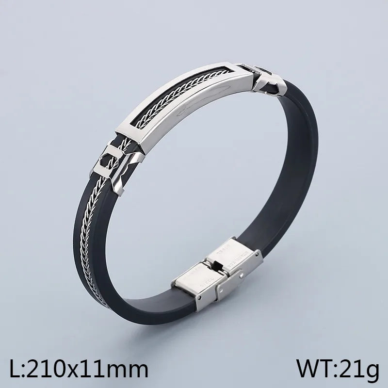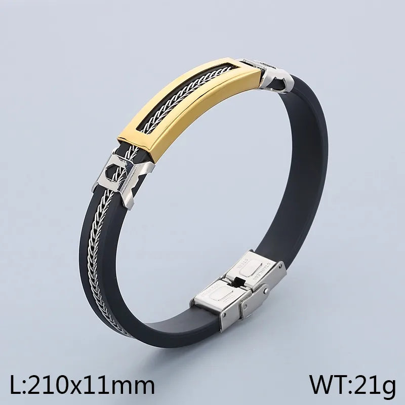 Business Classic Style Geometric 304 Stainless Steel Rubber 18K Gold Plated Men's Bangle