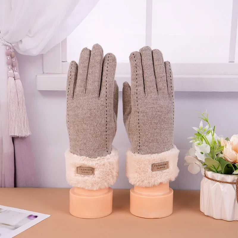 Cashmere gloves women winter factory hair wholesale warm outdoor riding windproof cold plus velvet padded knitted gloves