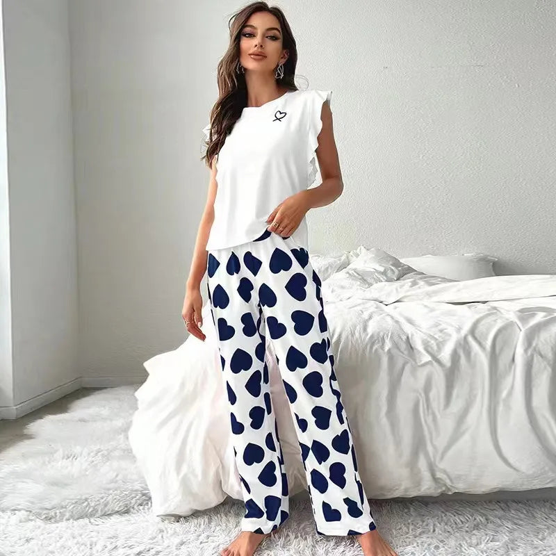 Casual Comfortable Ladies Sleepwear Set T-shirt Pants Home Clothes European Style Polyester Milk Silk Suitable For All Seasons