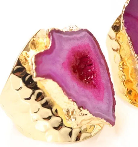 casual irregular crystal agate gold plated crystal wholesale open ring