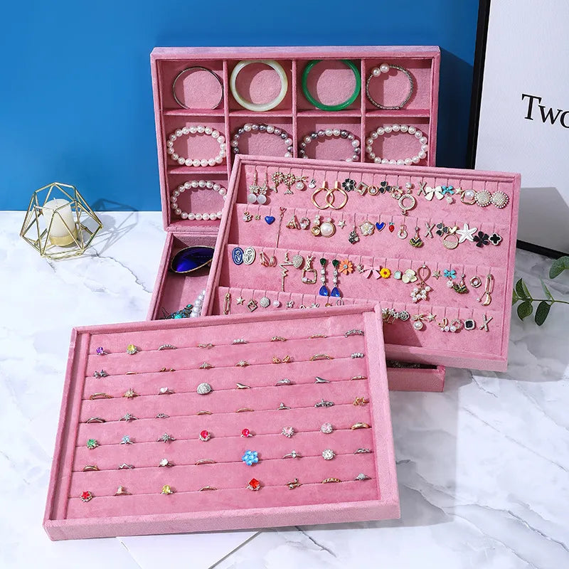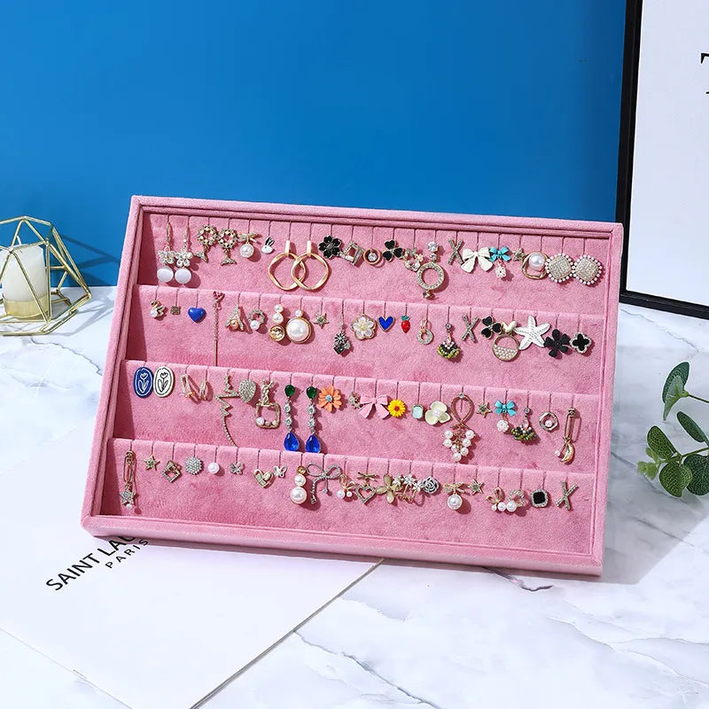 Casual Rectangle solid wood Flannel Jewelry Display Jewelry Rack