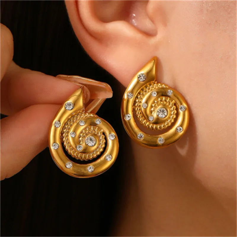 Casual Streetwear Geometric Plating 316 Stainless Steel December Birthstone Turquoise Zircon 18K Gold Plated Bullet Backs Ear Studs