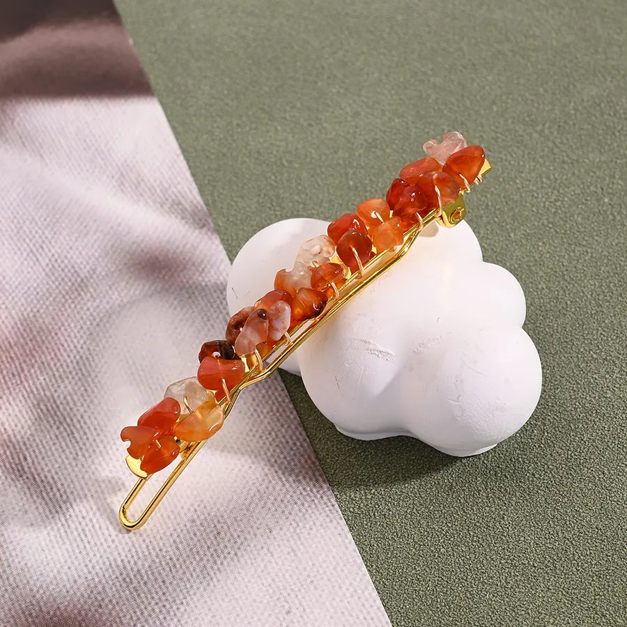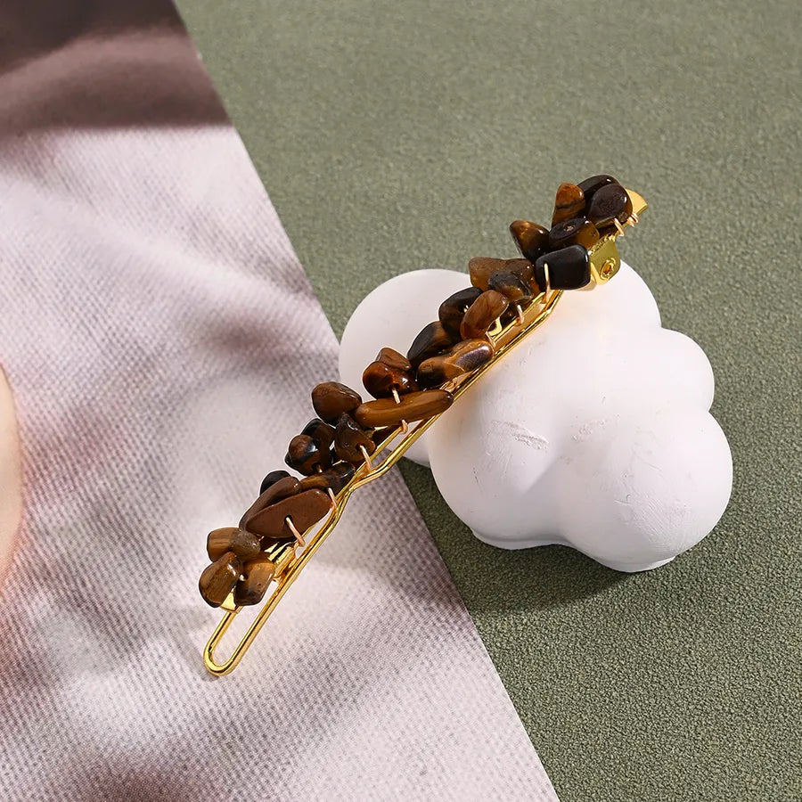 Casual Vintage Style Ethnic Style Women's Irregular Copper Handmade Polishing Plating Natural Stone Hair Clip