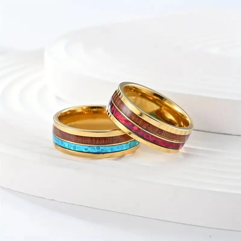 Chic Gold Double Groove Stainless Steel Ring Creative Fashion Jewelry Accessories By Gabee