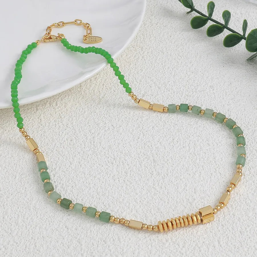 Chinoiserie Vintage Style Round Rectangle natural stone Copper Necklace In Bulk