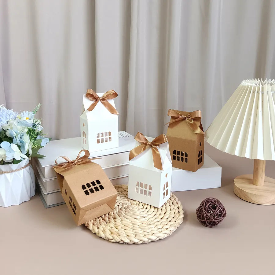 Christmas Gingerbread House Candy Gift Box With Butterfly Knot High End White Kraft Paper Luxury Packaging Box For Presents