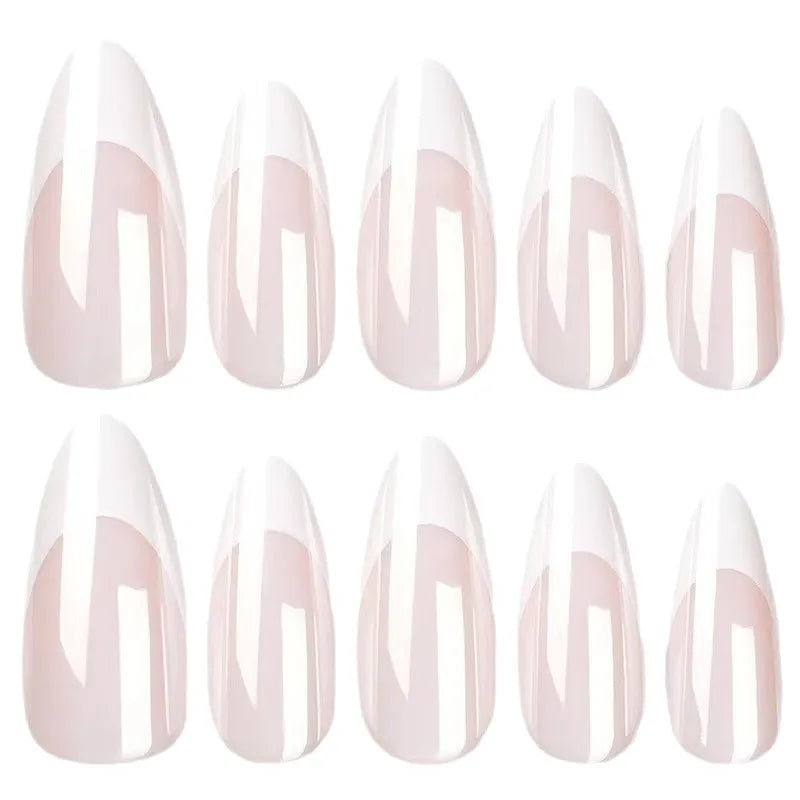 Classic European Style Pink Plated Almond Nails Elegant White Enhancing Detachable Wearable French Style Nail Art