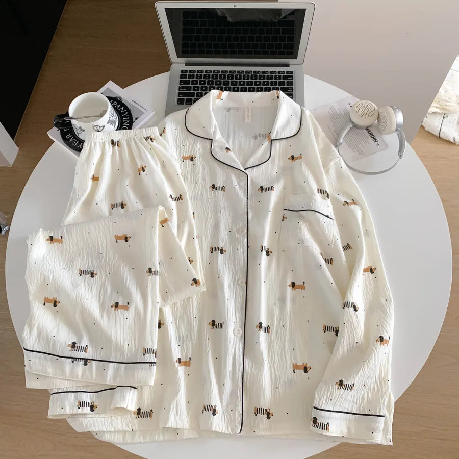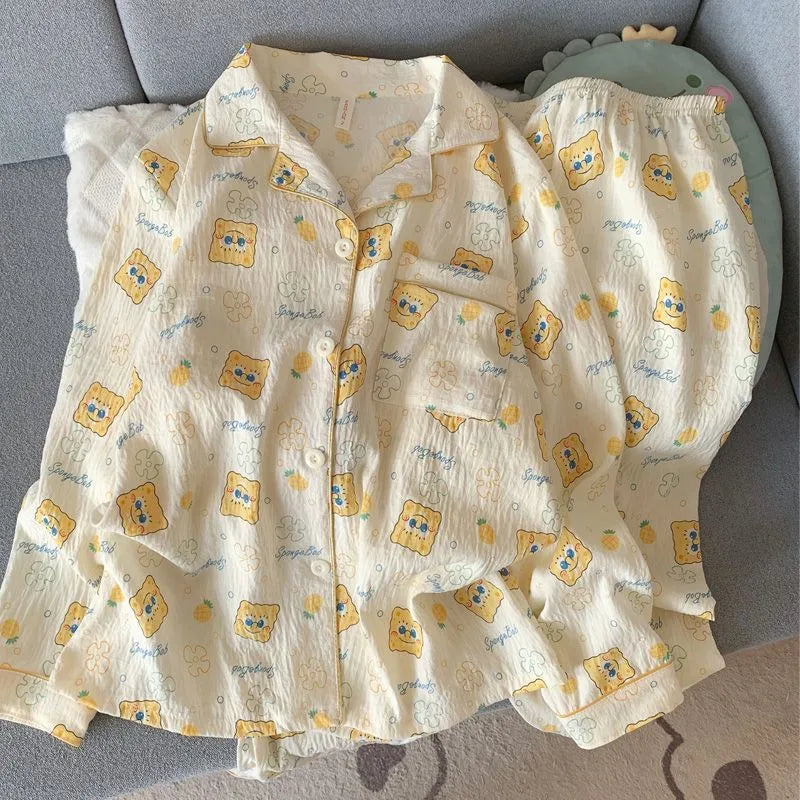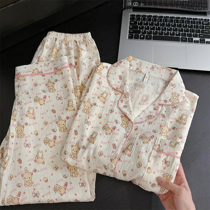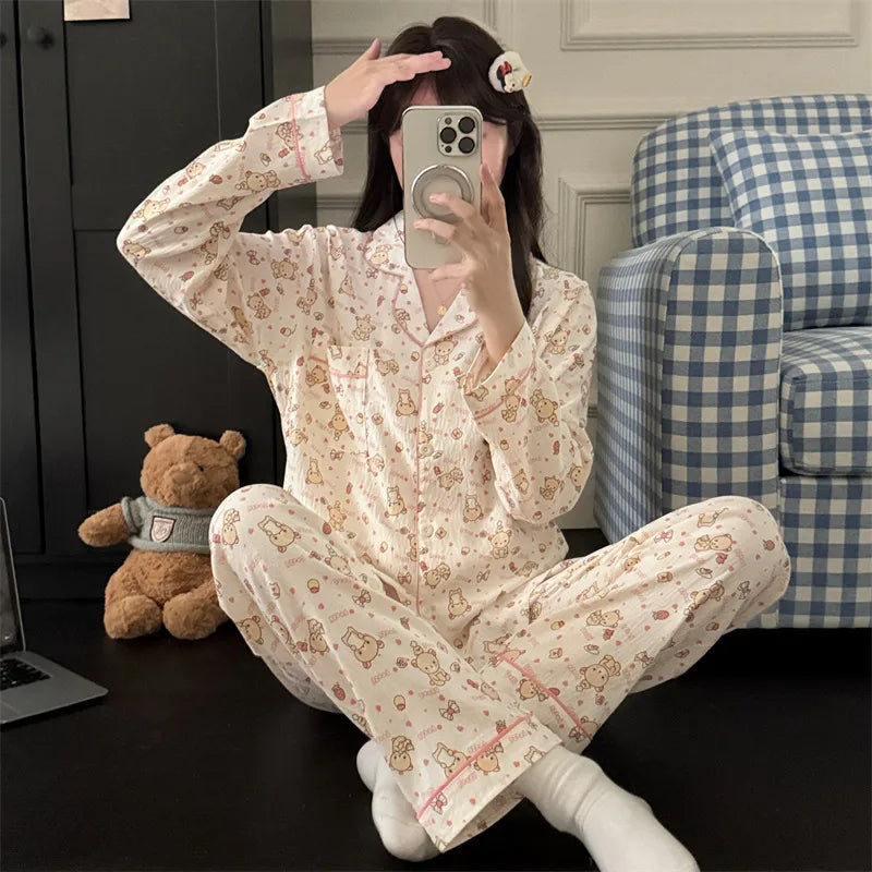 Cloud Cotton Women's Sleepwear Long Sleeve Thin Home Clothes Summer Outdoor Wearable Cute Cartoon Style Breathable Casual