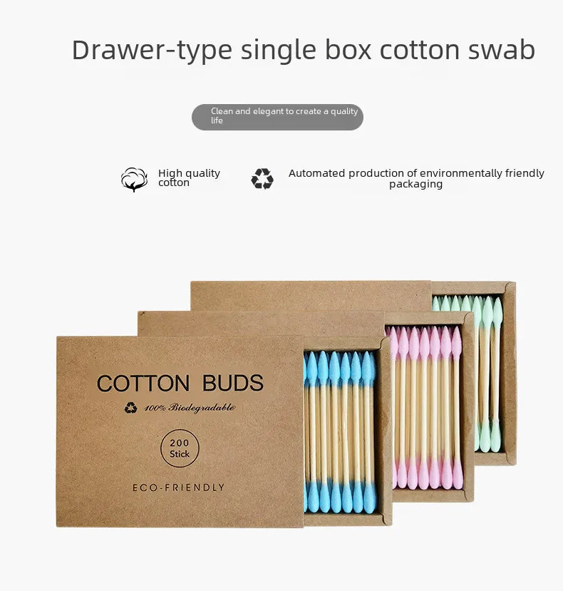 Color makeup remover cleaning makeup pointed cotton swab one round one pointed 200 cotton swab disposable packaging