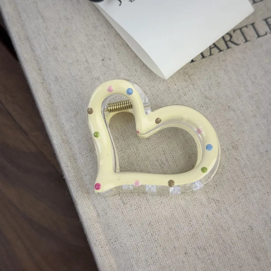 Colorful Polka Dot Heart Hair Claw Clip Half Up Bun Shark Bite Summer New Style Hair Accessory For Girls Fashionable Hair Grips