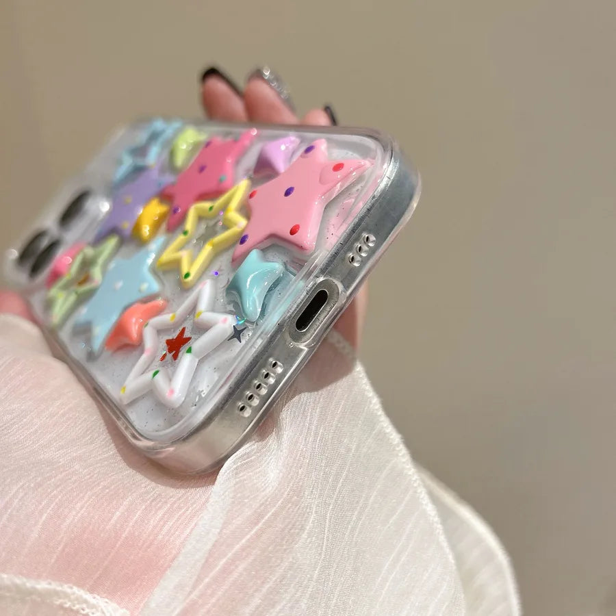 Colorful Star Cute Phone Case For Apple 16Promax iPhone 17 New Model Transparent Black Handmade Customizable Mobile Shell