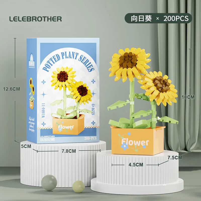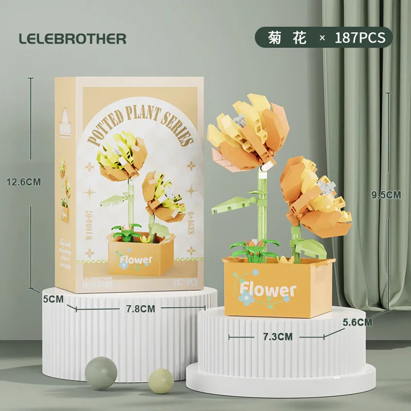Compatible with Blocks Flower Children's Educational Assembled Simulation Eternal Flower Flowers Fleshy Potted Toy Gift Wholesale