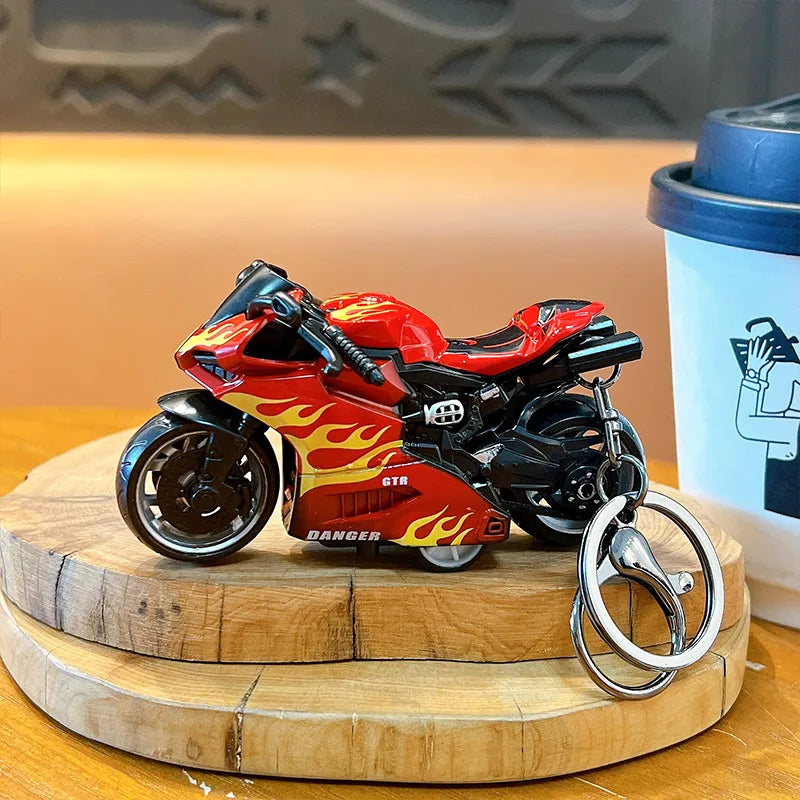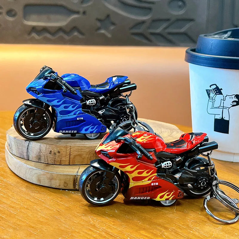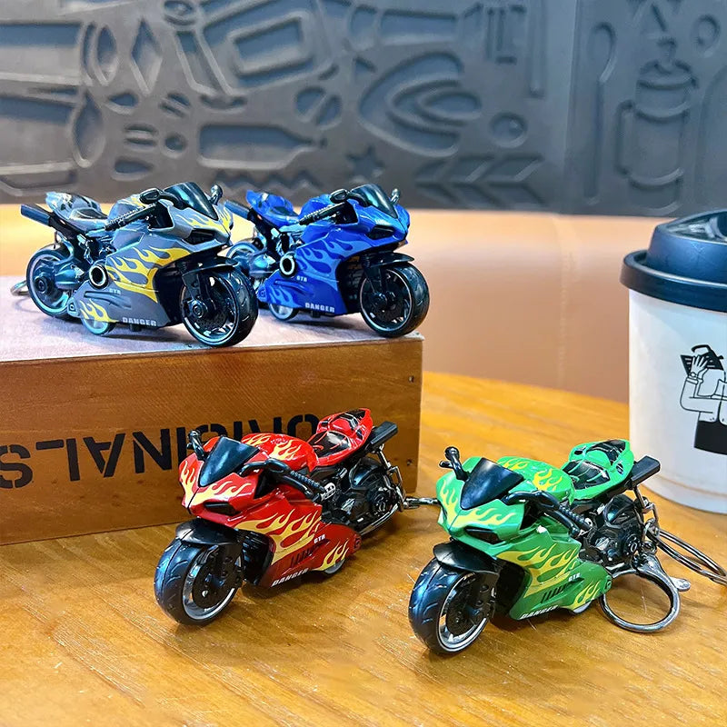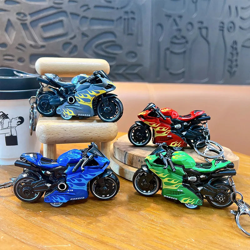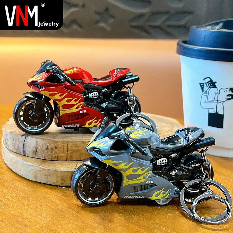 Cool Trendy Fire Dragon Motorcycle Keychain Fun Stress Relief Student Toy Motorcycle Keyring Cute ABS Material Birthday Gift