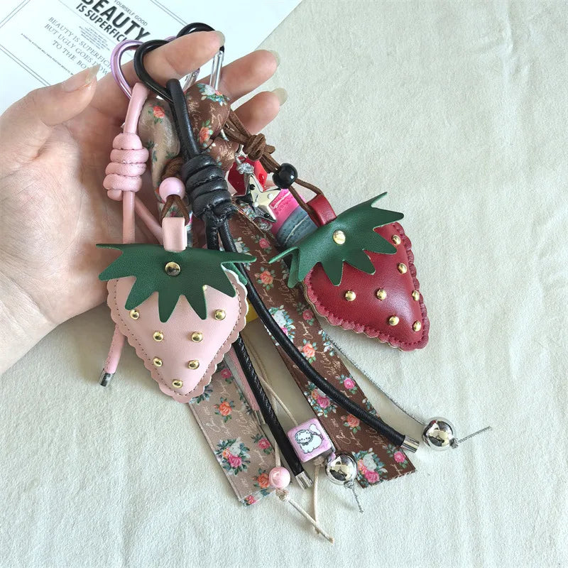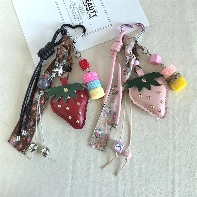 Creative Leather Strawberry Keychain Cute Bag Charm Mobile Phone Chain Accessory Luxury Artificial Leather Wedding Graduation Birthday