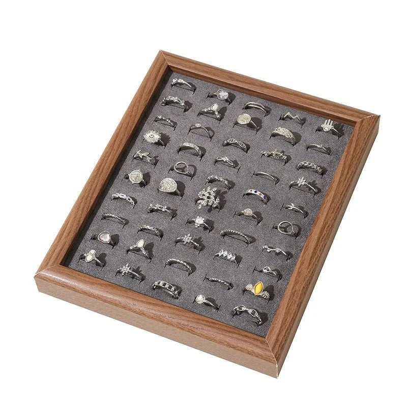 Creative Wooden Jewelry Display Tray Earring Storage Plate Jewelry Box Showcase Props Stand Wood Grain Pattern